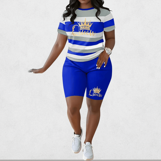 Absolutely love this set! The fabric is soft and breathable, making it super comfortable to wear all day. The fit is flattering and hugs the curves just right without being too tight. The bold 'Queen' design adds a stylish touch — I’ve gotten so many compliments! Perfect for casual outings or just lounging in style.