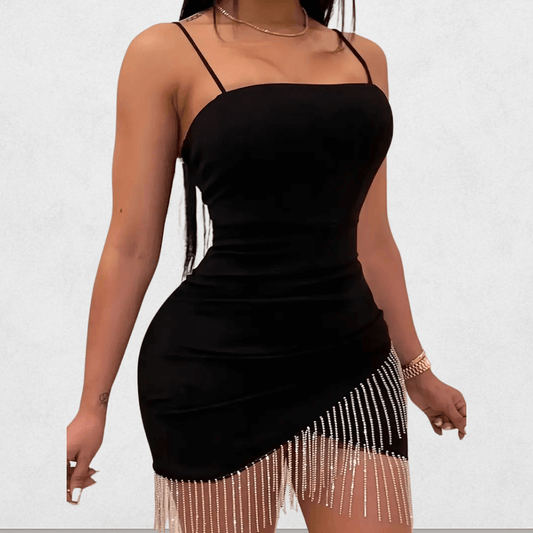 "This dress is a showstopper! The fit is absolutely perfect, hugging all the right curves without being uncomfortable. The material feels luxurious and the fringe details add the perfect amount of sparkle and elegance. I wore it to a party and got so many compliments — I felt confident and glamorous all night long..........